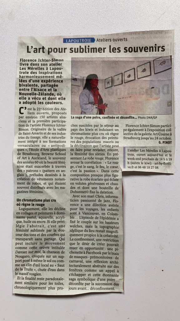 Plus de 120 personnes se sont rendus à Lapoutroie durant les deux premiers week-ends d’Octobre pour découvrir La Grange Aux Arts, l’atelier de travail de Florence Ichter-Simon. Un formidable succès et ce malgré les contraintes liées à la pandémie. Merci à tous d’etre venu si nombreux.